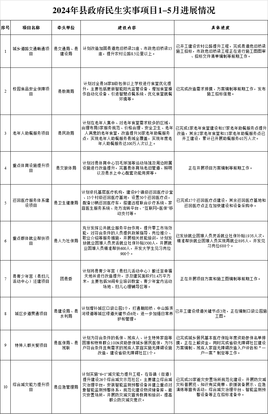 2024年縣政府民生實事項目1-5月進展情況