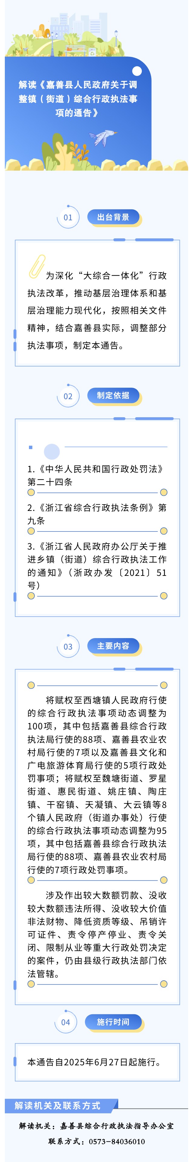 圖解《嘉善縣人民政府關于調整鎮(街道)綜合行政執法事項的通告》